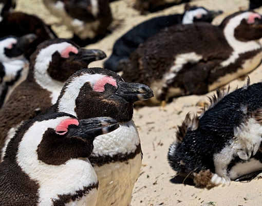 Uma recriação da praia da Cidade do Cabo, esse habitat é o lar de uma colônia de pinguins africanos. As rajadas de vento podem caminhar ao lado dessas criaturas enquanto elas nadam.